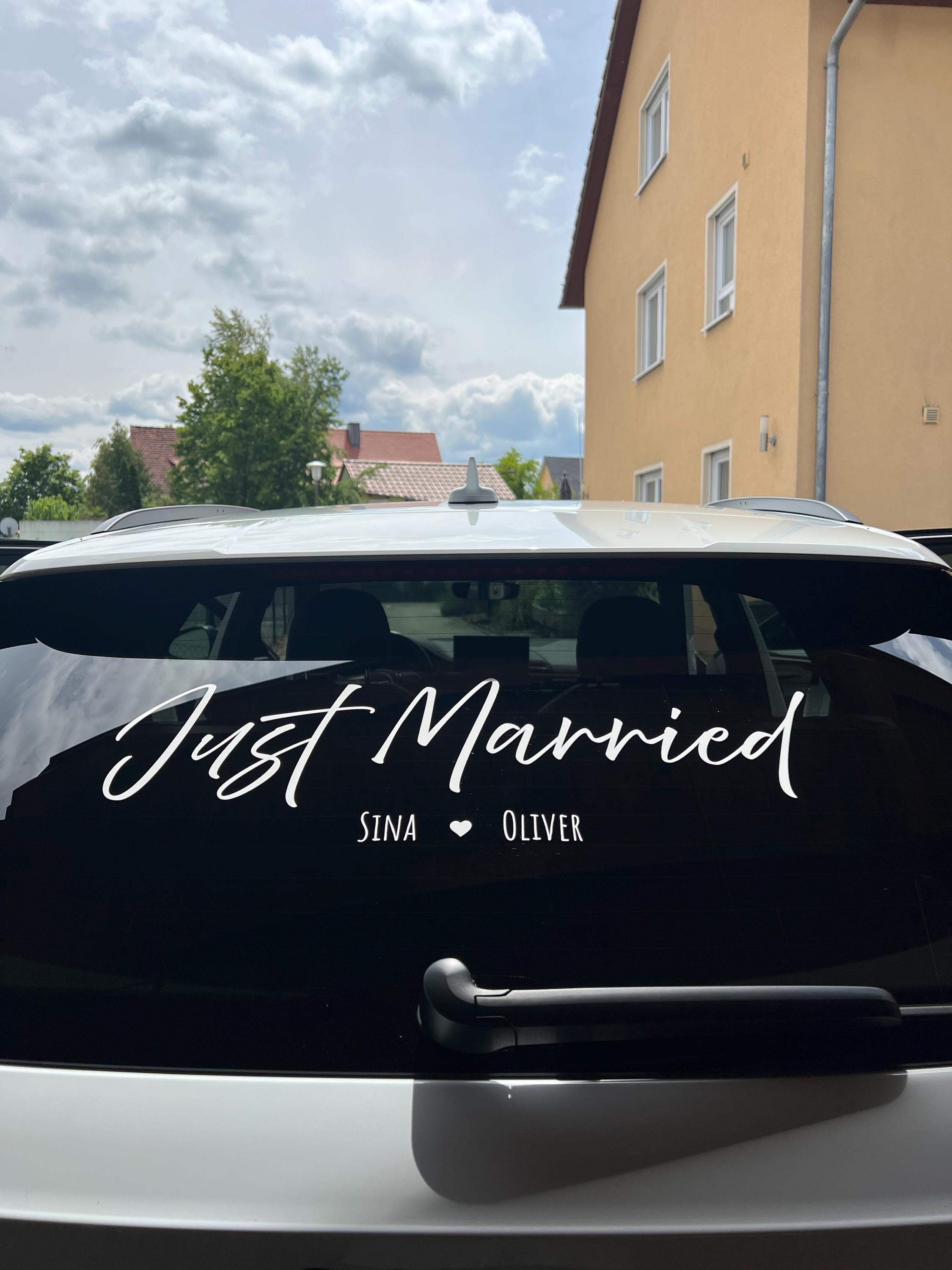 Just Married Heckscheibenaufkleber mit Namen 60x18cm (BxH)