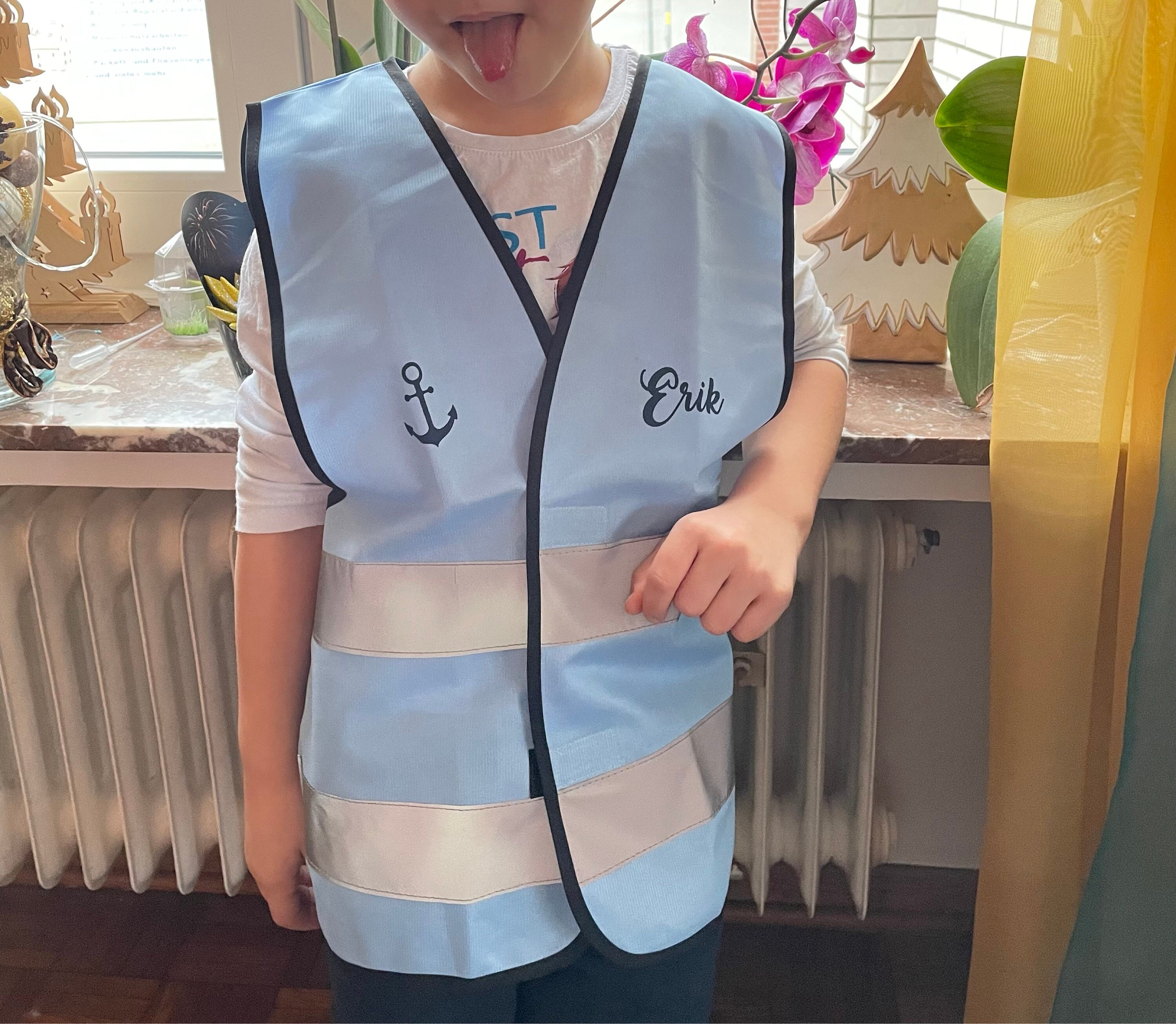 Kinder Warnwesten personalisiert – Sicherheit mit Namen