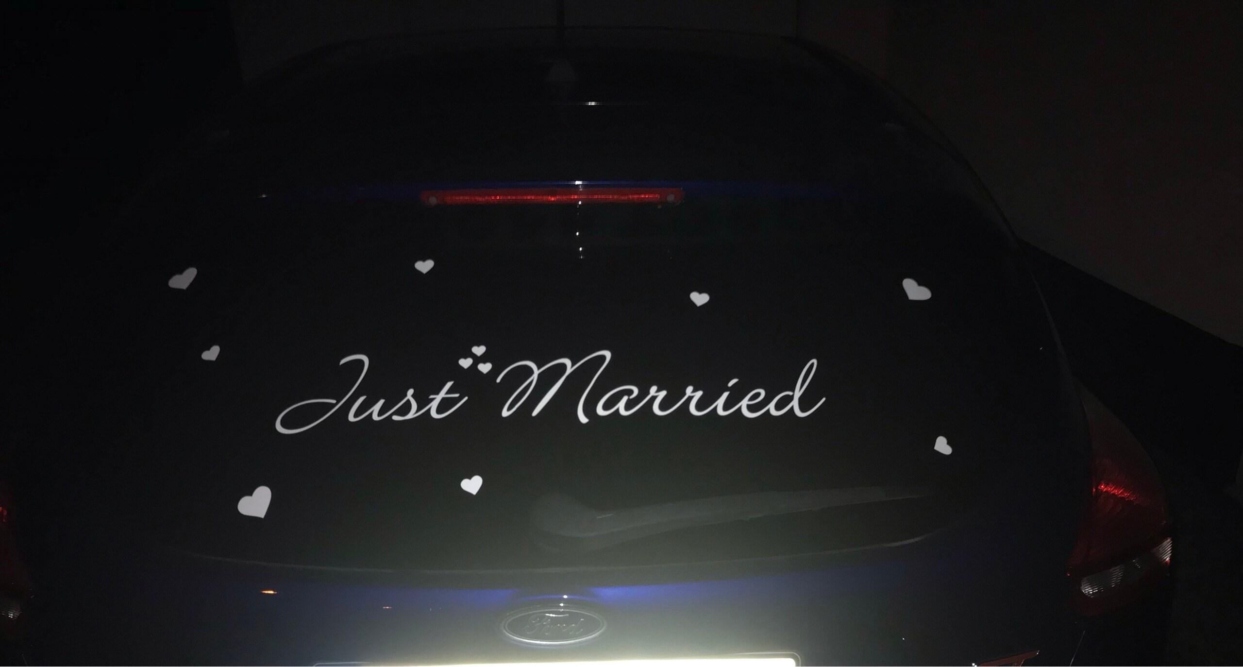 Frisch verheiratet Heckscheibenaufkleber! 60x27cm (BxH)