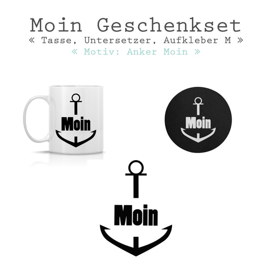 GESCHENKSET Motiv *Anker Moin* Tasse + Untersetzer + Aufkleber