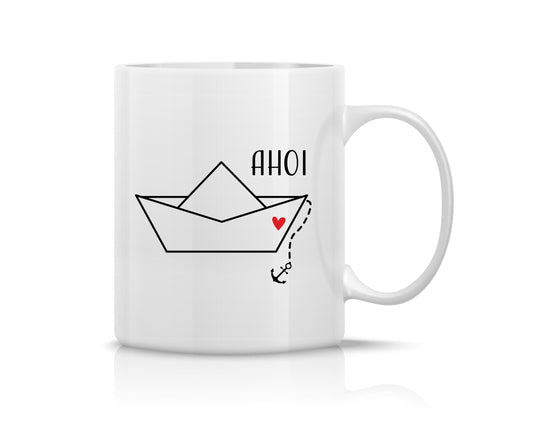 Tasse bedruckt mit Motiv *Ahoi, Boot & Herz*
