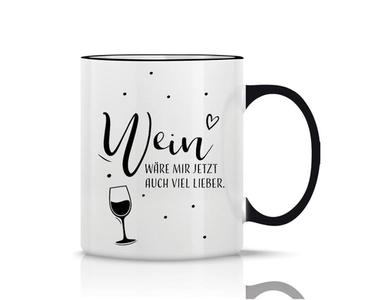 Tasse black bedruckt mit Motiv *Wein wäre mir jetzt auch lieber*